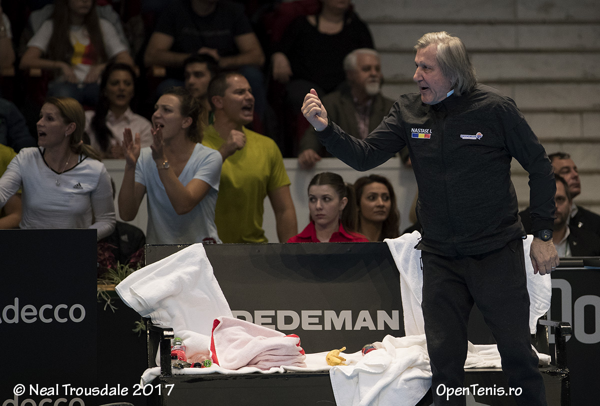 Căpitanul nejucător Ilie Năstase a declarat că Sorana a pierdut pe muchie de, fiind de părere că doar câteva puncte au decis soarta partidei."Jocul de azi al Soranei a fost decis de câteva puncte. Dacă Sorana câștiga 2-3 puncte în plus, atunci era ea câștigătoare. Dar, din nefericire, așa este tenisul. Când ai atât de multe șanse și le ratezi, acestea se întorc împotriva ta. Ea a pierdut un meci pe muchie de cuțit. Repet, diferența a fost făcută de câteva puncte. Dar mâine este o altă zi, putem să câștigăm primele două meciuri de simplu și se va decide totul în partida de dublu", a explicat el. Năstase este mulțumit de tenisul văzut pe teren în cele două partide de sâmbătă, chiar dacă România este condusă cu 2-0. "Nu ştiu când am stat ultima dată pe un scaun 3 ore și jumătate fără să mă mișc deloc. Așa că a fost greu, atât pentru Sorana, cât și pentru toată lumea. După trei ore în sală ca jucător te simți aiurea, se vede la picioare a doua zi. Dar ambele meciuri de azi au fost de calitate bună. Trebuie să fim mulțumiți că s-a jucat un tenis frumos, chiar dacă suntem conduși cu 2-0 ", a adăugat căpitanul nejucător.