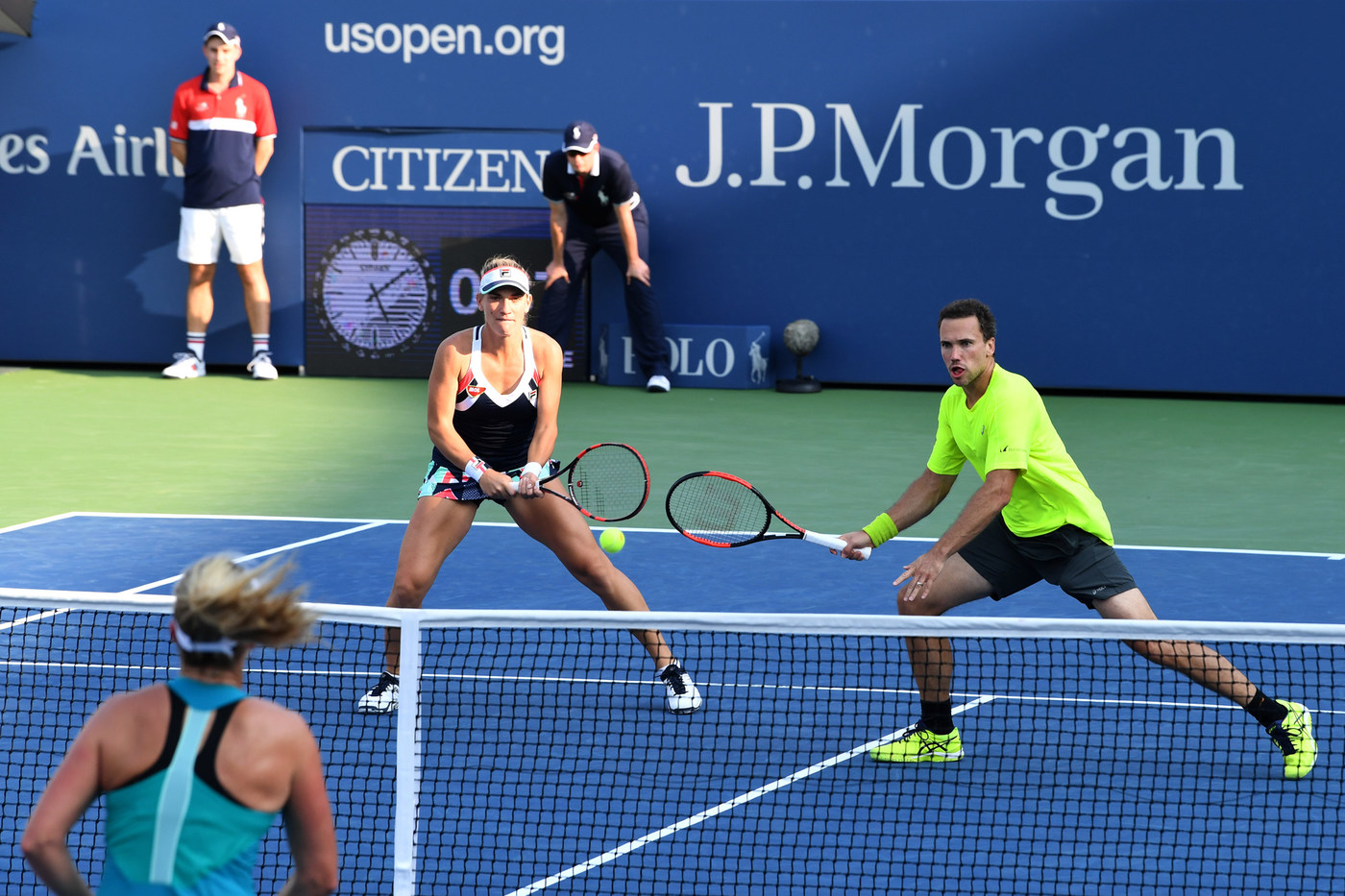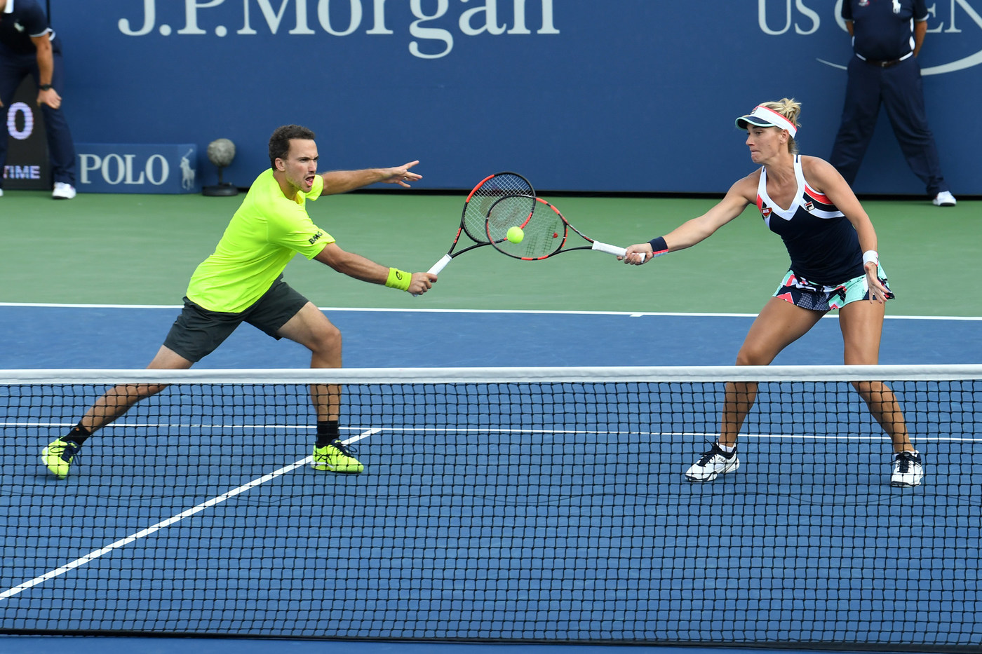 Tecău şi Soares au fost adversari din nou după numai câteva ore, la dublu mixt. Românul şi Coco Vandeweghe (Statele Unite) au câştigat la super tie-break meciul din sferturi cu perechea compusă din brazilian şi Timea Babos (Ungaria; cs 4): 4-6, 6-1, 10-8. Anul trecut, CoCo a jucat finala de dublu mixt la US Open alături de compatriotul său Rajeev Ram. Tot anul trecut, Tecău şi Vandeweghe au pierdut finala la Australian Open. În semifinale la Flushing Meadows, perechea româno-americană va întâlni principalii favoriţi, Martina Hingis şi Jamie Murray (Elveţia, Marea Britanie), victorioşi cu 6-3, 2-6, 10-8 în sfertul cu perechea Abigail Spears, Juan Sebastian Cabal (Statele Unite, Columbia).