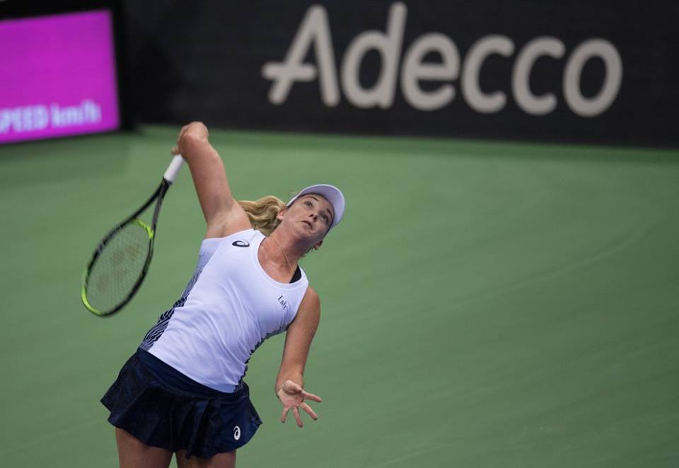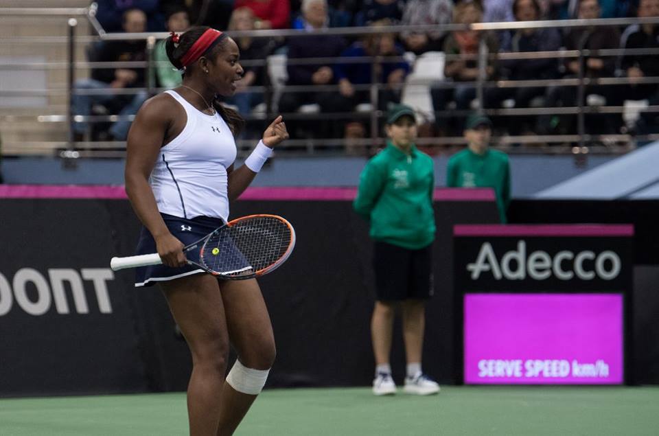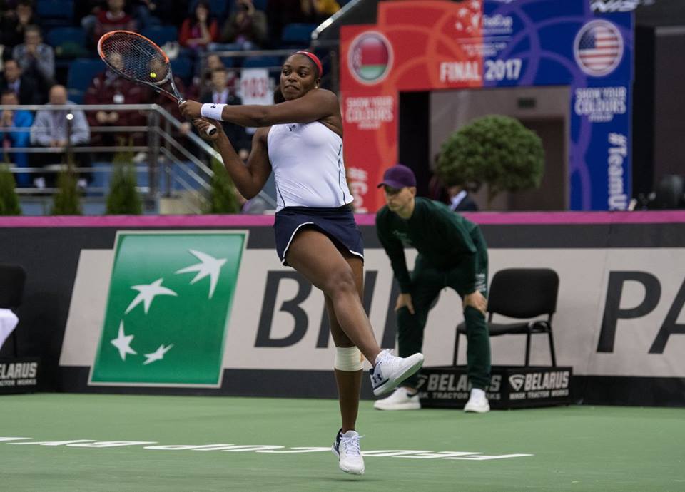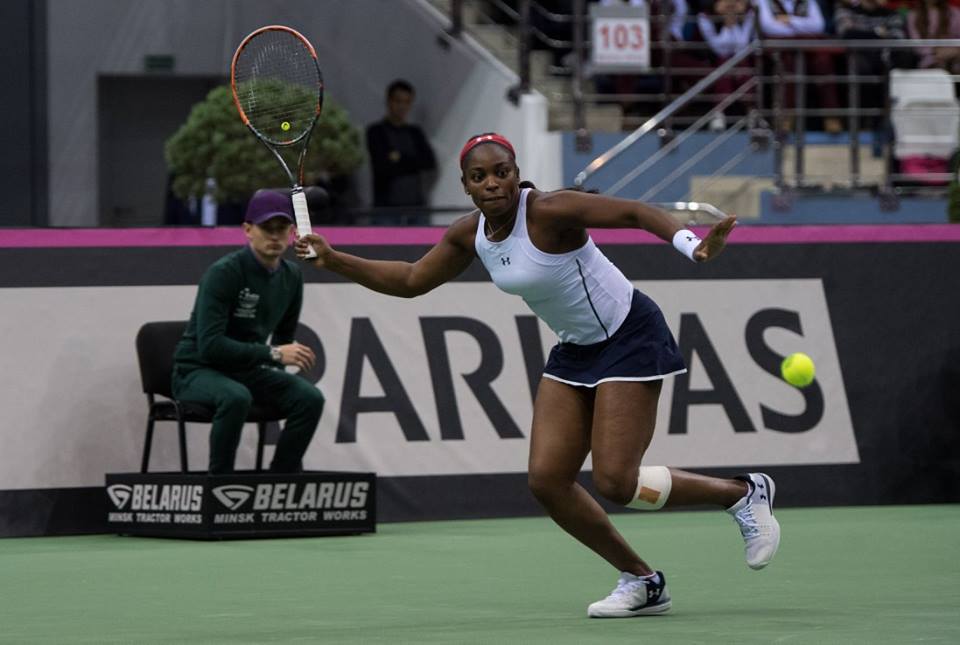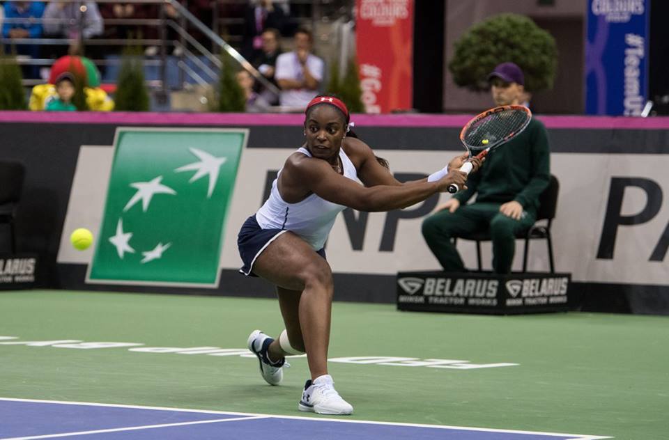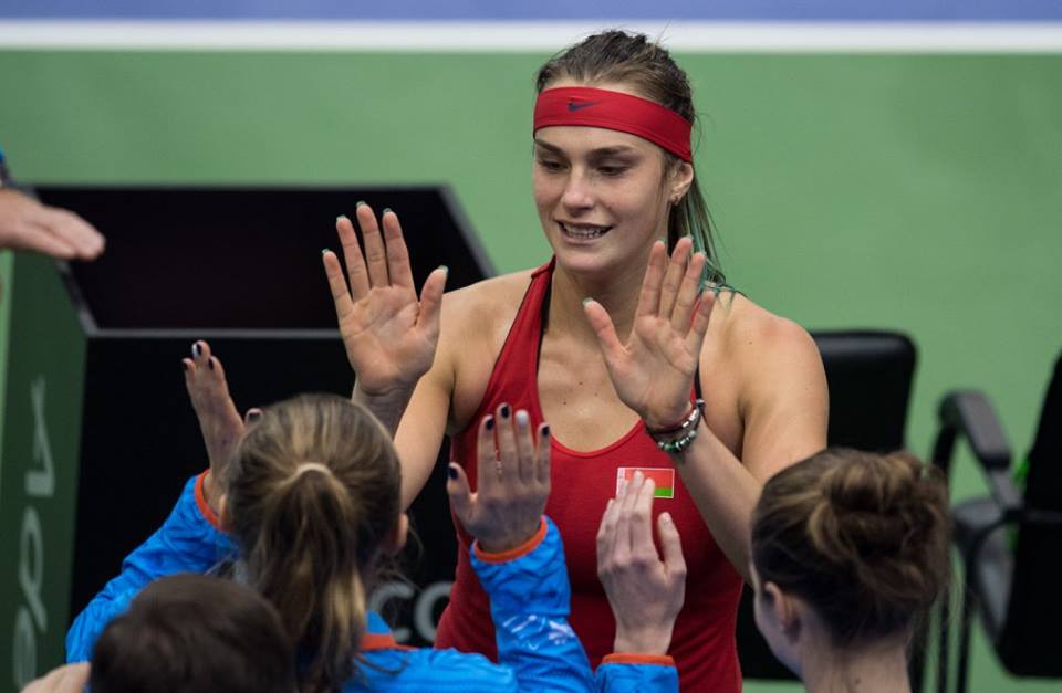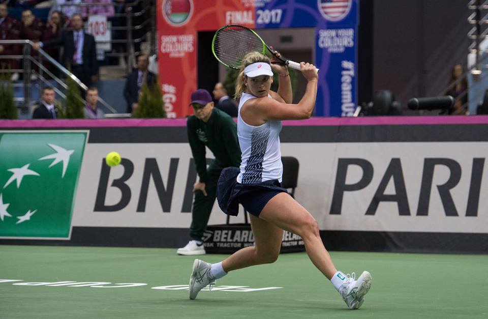 În primul meci de simplu, CoCo Vandeweghe (10 WTA) a adus primul punct pentru echipa Statelor Unite, după ce a învins-o pe Aleksandra Sasnovici (87 WTA) cu 6-4, 6-4. Meciul a durat 93 de minute şi a debutat cu un break al lui CoCo, suficient ca aceasta să-şi adjudece setul. În partea a doua a meciului, Vandeweghe s-a desprins la 4-2, s-a văzut egalată, după care a realizat un break, iar în game-ul următor a convertit în punct prima minge de meci.