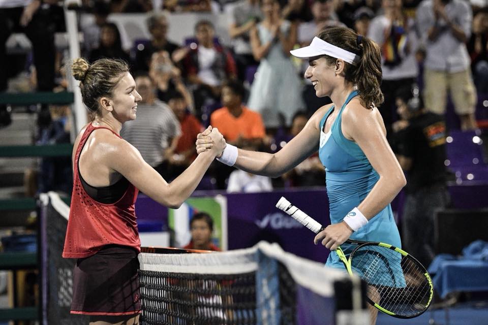 Halep (26 ani) a arătat un joc solid la prima apariţie înaintea noului sezon competiţional şi s-a impus în 91 de minute. De la 1-0 pentru liderul mondial în primul set au urmat trei break-uri, ultimul venind după ce românca a fructificat a şasea minge de break. Konta s-a apropiat la 3-4, după care Simona a câştigat cele două game-uri prin care şi-a adjudecat manşa. Setul secund a fost ceva mai echilibrat. Românca a preluat conducerea cu 3-2, a ratat trei mingi de break la 4-2, iar la 5-3 a convertit în punct prima minge de meci.