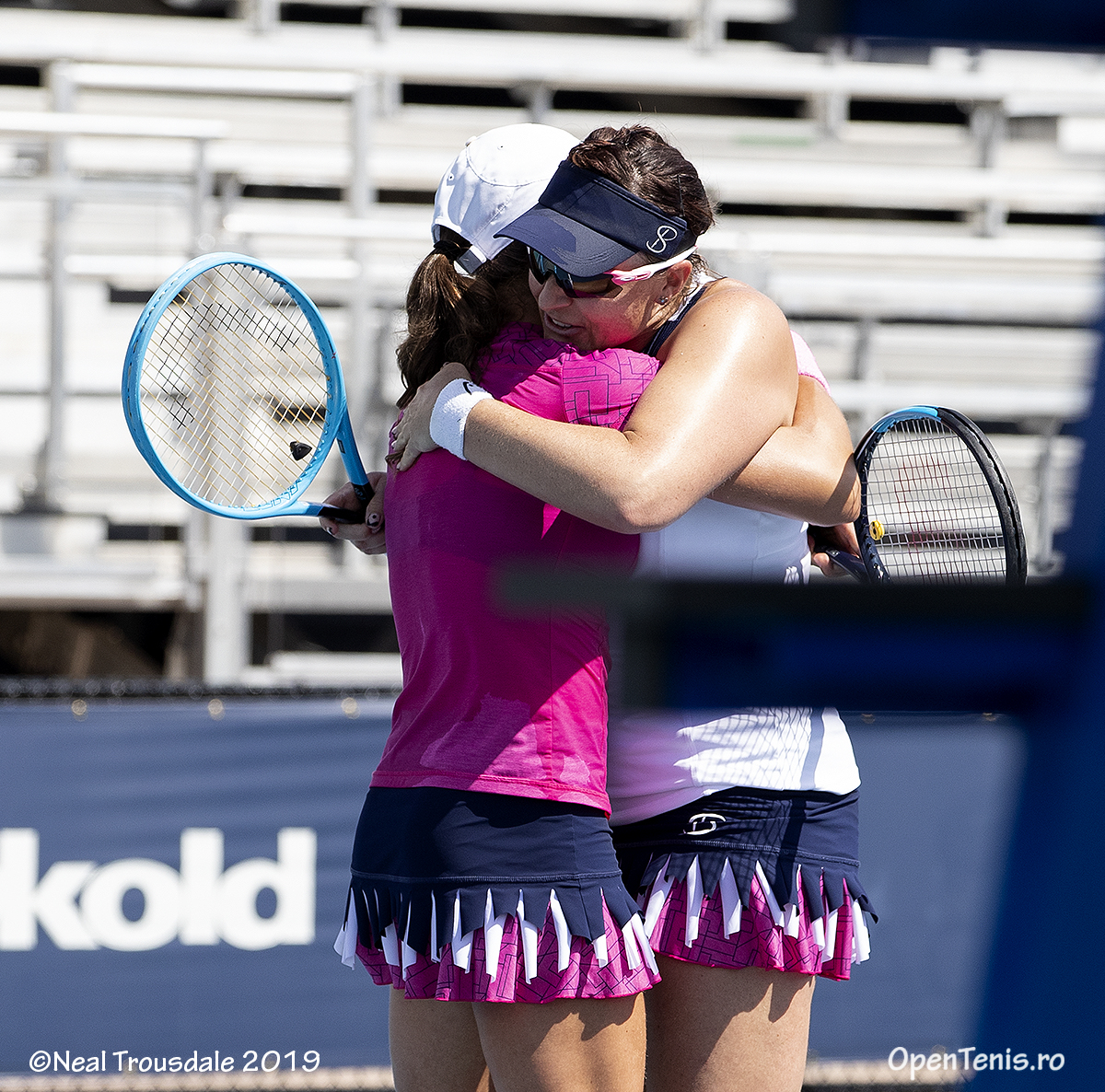 Cele două le-au învins cu 1-6, 7-5, 10-8 pe Simona Halep şi germanca Julia Goerges la capătul unui meci care a durat o oră şi 33 de minute. Primul set a fost controlat autoritar de Simona Şi Julia, care s-au distanţat la 4-0 după break-uri la 0-0 şi 2-0, un game alb la 1-0 şi un altul în care au salvat trei mingi de break. La 5-1, ele au condus cu 40-0pe serviciul adversarelor, convertind în punct a patra minge de set.