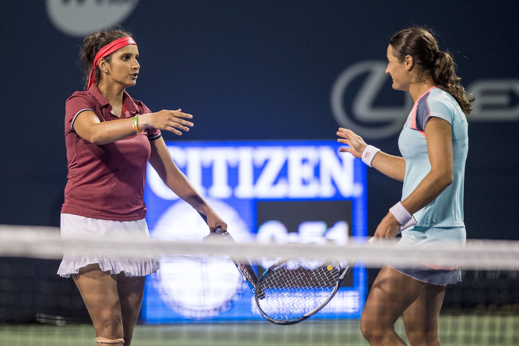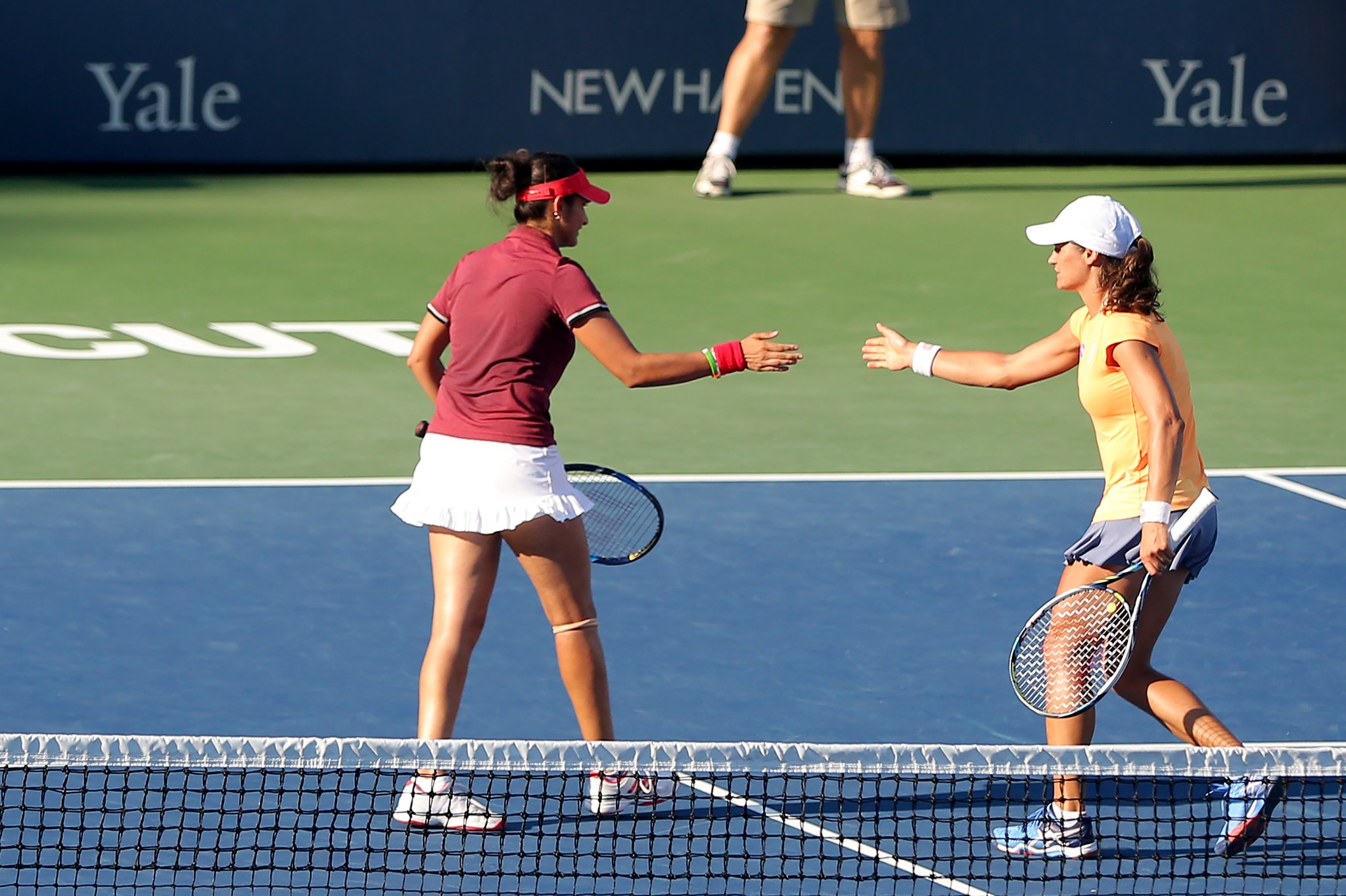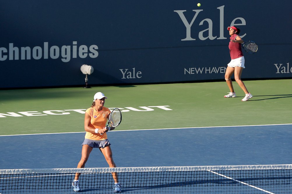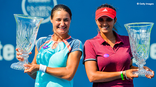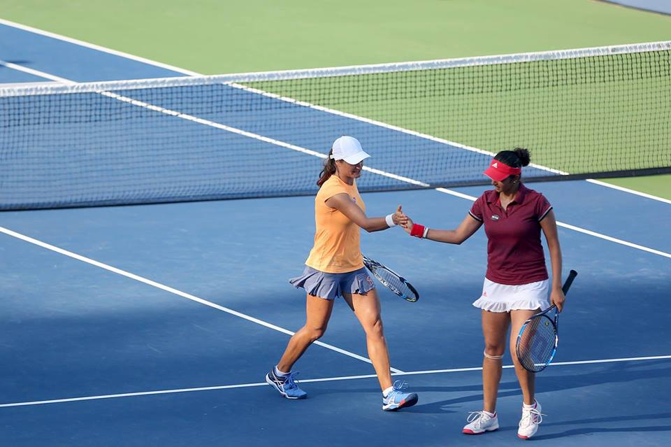 În primul set s-a mers cap la cap până la -3 pentru Sania şi Monica, moment în care acestea au realizat un break. În game-ul imediat următor, ele au salvat două mingi de break, după care au avut şansa de a pune capăt setului, dar au ratat-o. La 6-5, au câştigat punctul care le-a permis să-şi treacă în cont prima poarte a întâlnirii. Setul secund a fost la fel de echilibrat: la 1-1 şi 3-3 s-au consemnat câte un break pentru fiecare pereche, iar la 5-4, Mirza şi Niculescu au condus cu 40-15 pe serviciul adversarelor, convertind în punct a treia minge de titlu.